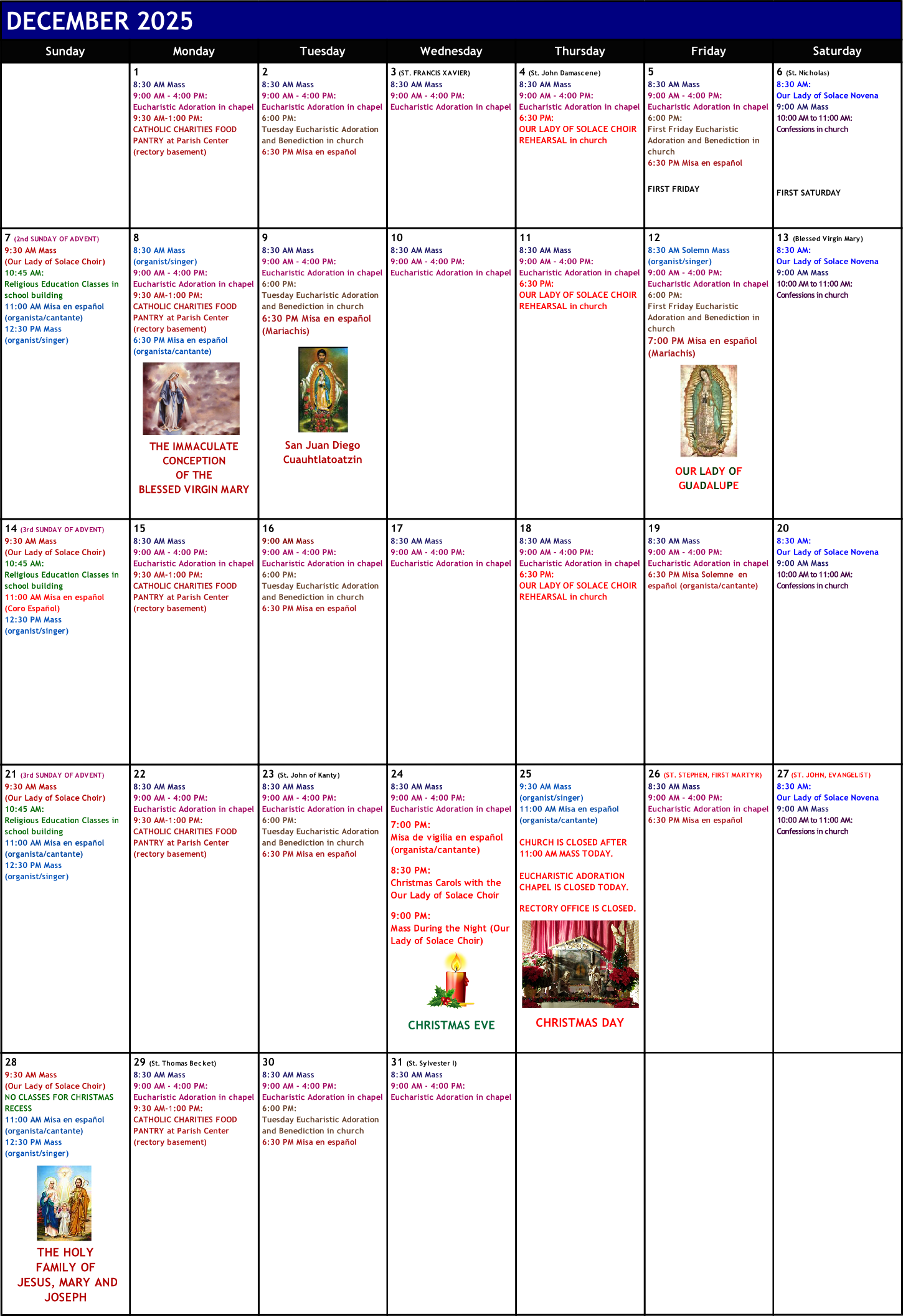 To submit a parish or community event for the calendar, please e-mail the webmaster at olsmusicman@earthlink.net.
