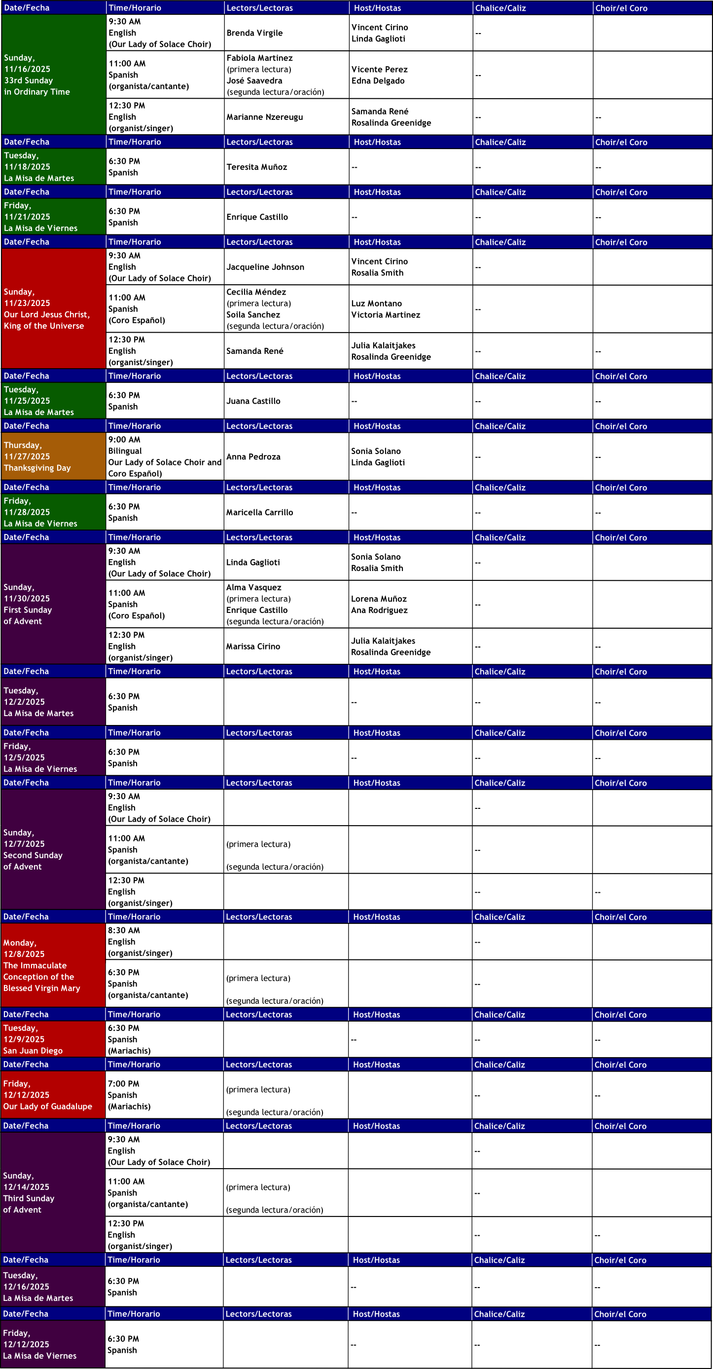 Our 126th year of serving the people of God in Coney Island Schedule of Lectors and Extraordinary Ministers of Communion November 2025