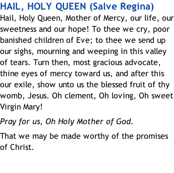 on the next single bead. Follow with the decade of HAIL MARYS,