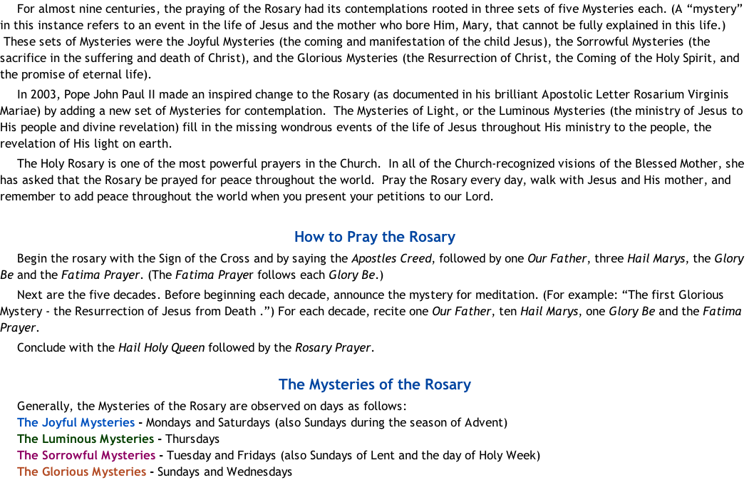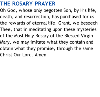 At the end of the decade say the GLORY BE and the FATIMA Prayer