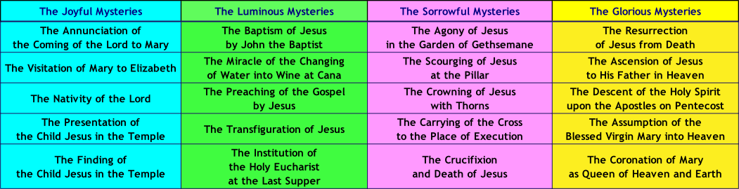 the GLORY BE and the FATIMA Prayer. Do the same for each Mystery.
